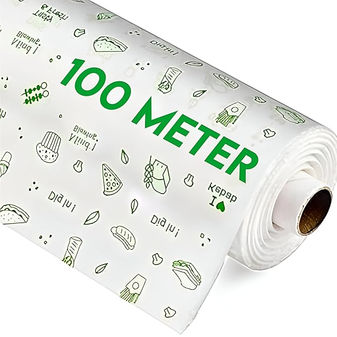 Butter Paper for Food Wrapping 100 Meter Lengh Water & Grease Resistant Biodegradable Parchment Roll Non-Stick Re-heatable Oven Safe Roll Foodsafe Packing & Serving