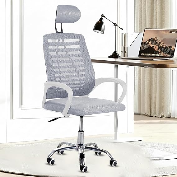 Casa Copenhagen,Mesh Office Desk Chair,Rocking Ergonomic Computer Chair Adjustable High with Headrest and Comfortable Armrest Swivel- Jet Grey & White Handle