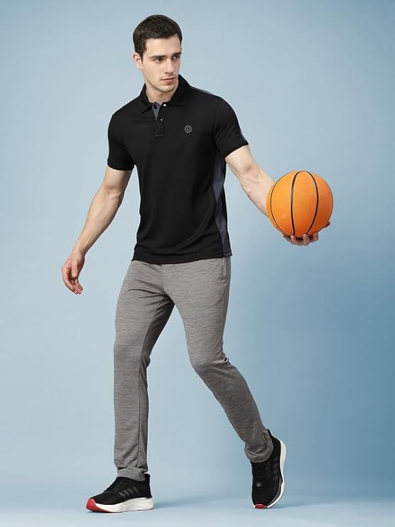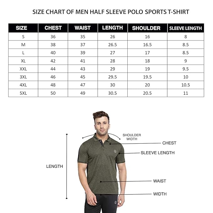 CHKOKKO Men Polyester Solid Active Sports Wear Polo Half Sleeve Gym T-Shirt with Button-Down Collar Quick Dry Breathable Perfect for Workout Regular Fit and Running Tee