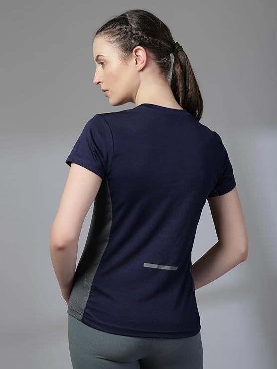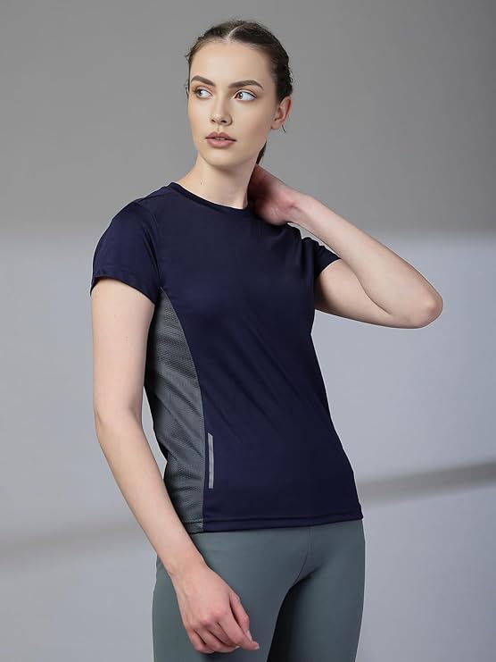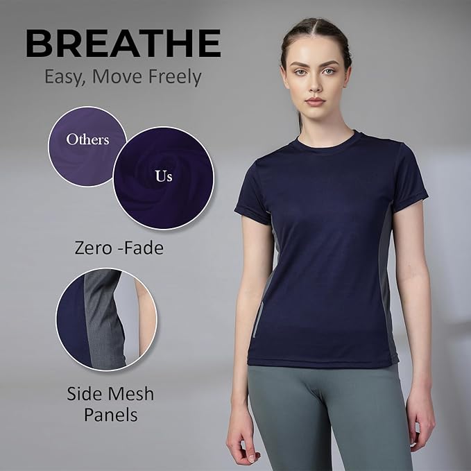 CHKOKKO Women's Polyester Dry Fit Solid Quick Dry Sports Half Sleeve Regular Fit Active Wear Gym Tshirt Round Crew Neck Breathable Side Mesh Panels for Running Workout and Fitness