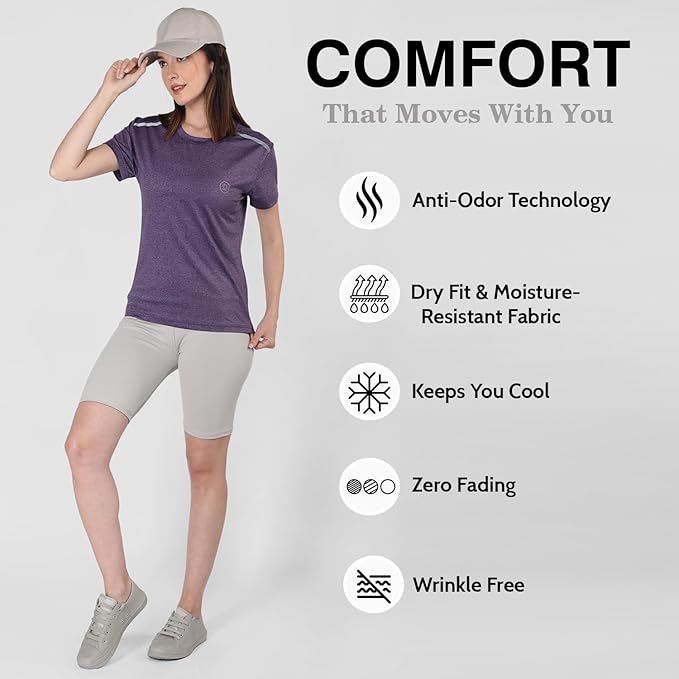 This Sports Tshirt For Women Has Anti-Odour Properties Which Never Let You Smell In Any Weather. The 4-Way Stretch Women Tshirt Construction Allows Better Movement In Every Direction And Renders Natural Movement. Its Stretch Construction Enhances Mobility For A Superior Range Of Motion. It Has The Antimicrobial And Sweat-Wicking Technology.