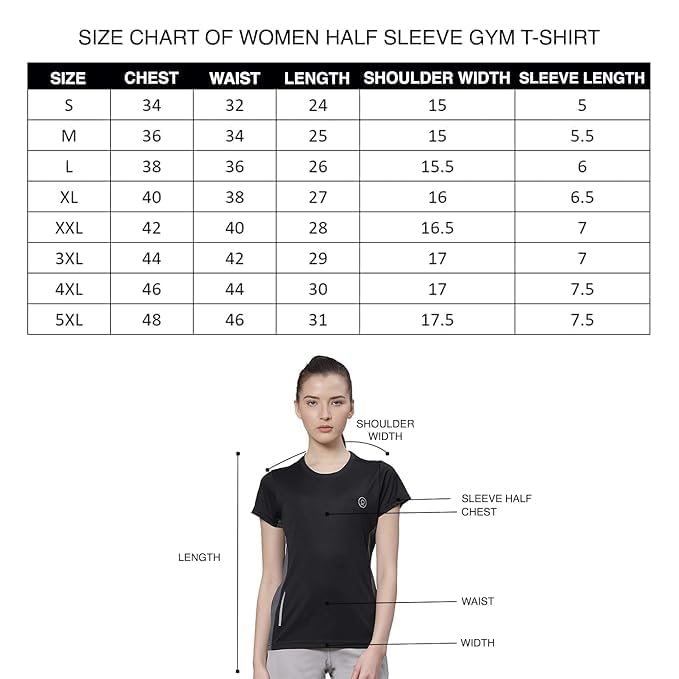 Note:-Please Follow The Size Chart Given In The Last Image.; Material: This Women Gym Tshirt Is Fabricated With 95% Polyester And 5% Lycra Which Gives Allowance To Wear In Every Season. It Is Ultra-Soft Breathable Fabric With The Double Hemmed Shoulders.