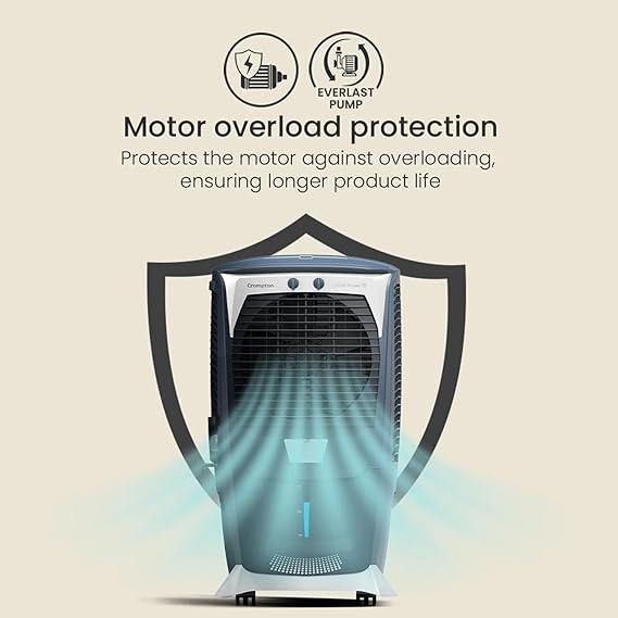 • Product Details: Crompton's high performance portable desert air cooler with high density honey comb cooling pads and 3-way speed settings for air speed control