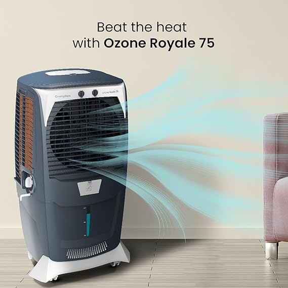 • 4-way Power Air Delivery: With a powerful air delivery of 4200 m3/hr, Ozone Royale 75 air cooler is suitable for up to 490 Sq. Ft. room size. which helps to keep the room cool & refreshing for a long time.