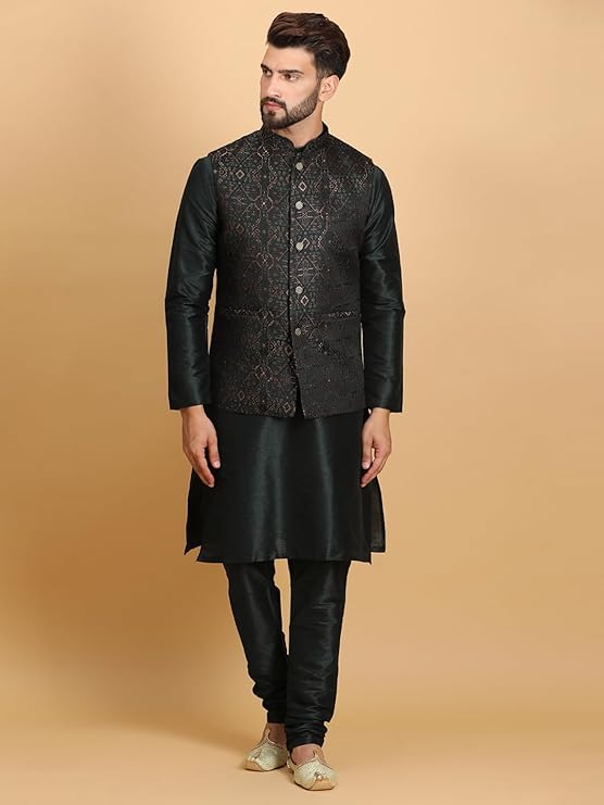 • Material: Silk Blend Kurta Set Jacquard Nehru Jacket