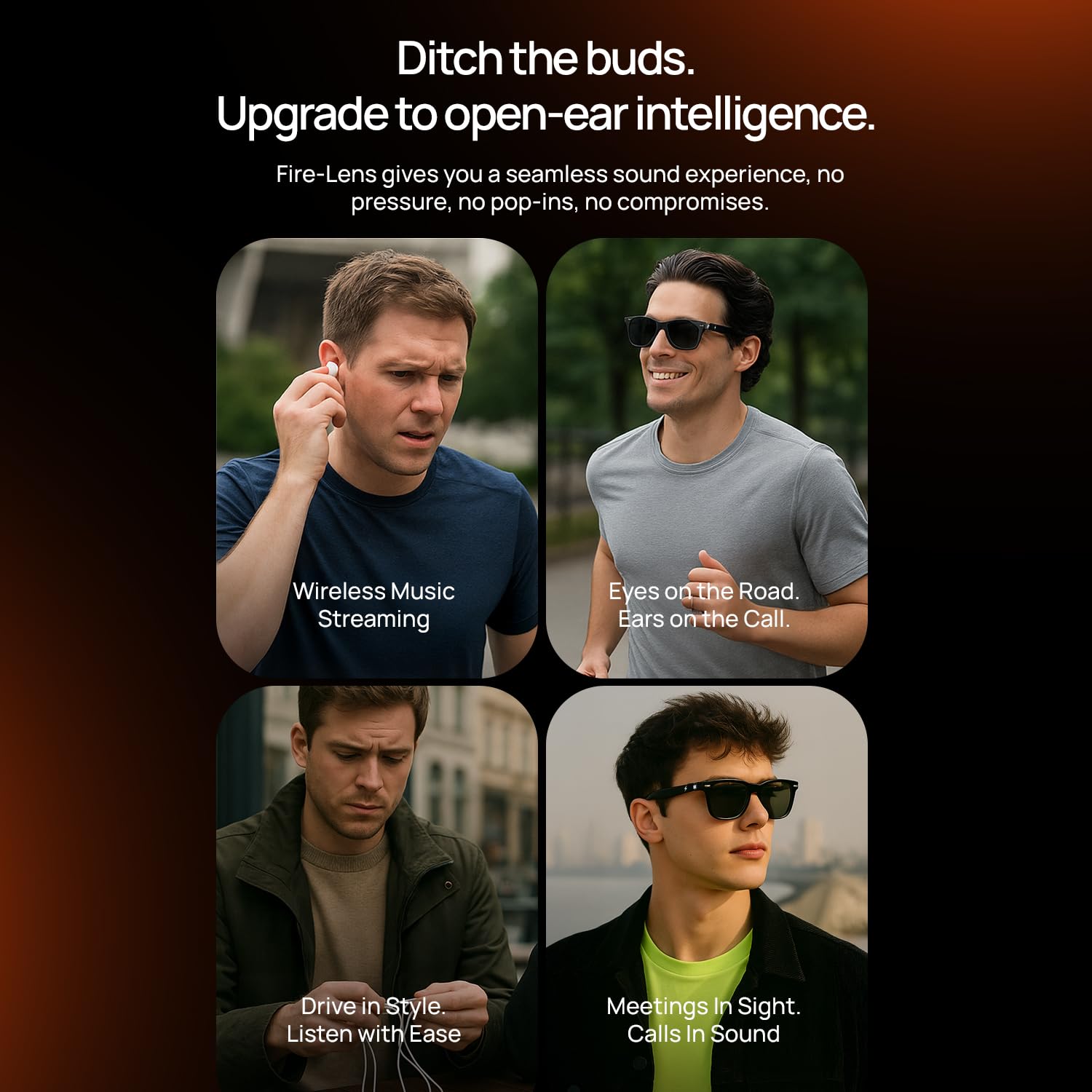 • Optical Lens Support + True Wireless Freedom - Customize your Fire-Lens Dune Smart Glasses with prescription lenses for all-day wear. Ditch bulky earbuds enjoy wireless freedom with a single fashionable accessory that delivers style, comfort, and smart functionality wherever you go.