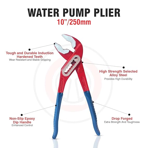 Versatile Functionality: With a 25.4 cm (10 inch) length, these standard water pump pliers are suitable for a wide range of plumbing and automotive tasks.