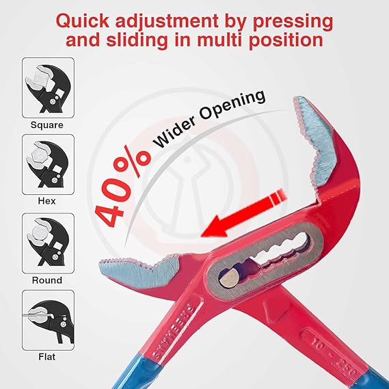 Heavy Duty Construction: Crafted from premium alloy steel, these water pump pliers are built to withstand heavy-duty use and last for years.