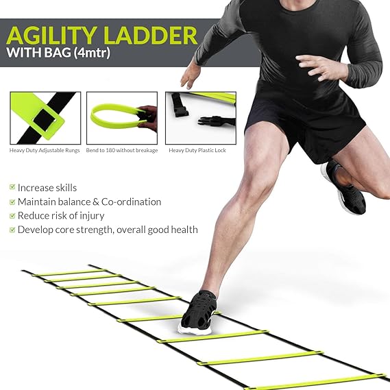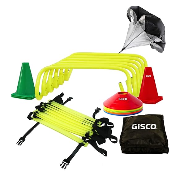 🎒 Kit Included - 6@ Hurdles - 6Pcs + 4 M Agility Ladder - 1 Piece + 6@ Marker Cone - 6 Pcs + Space Marker -20 Pcs + Speed Chute Large - 1 Piece + Kit Bag