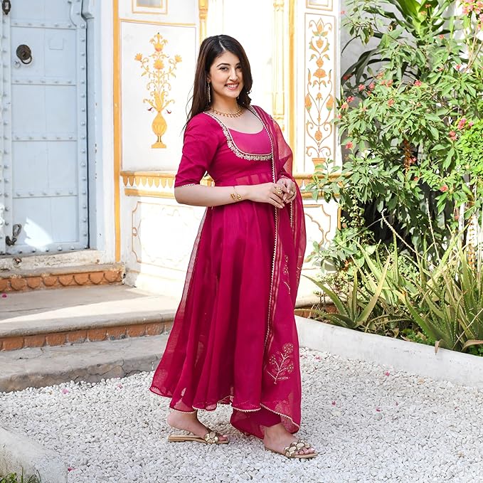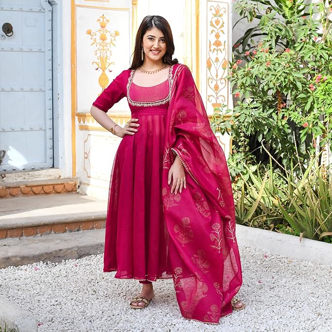 • Style: Anarkali || Length: Calf Length || Sleeves: 3/4 Sleeves || Size Chart- Kurta-S-36 in, M-38 in , L-40 in , XL-42 in , XXL-44 in,Pant :- S-28 in, M-30 in , L-32 in, XL- 34 in , XXL- 36 in,For More Please refer to the size Chart below.
