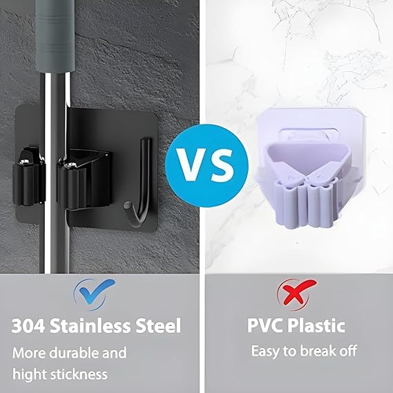 • ◘【EASY TO INSTALL】: This wall mounted mop broom clip hanger for heavy duty tools is easy and convenient to install. Just stick it to the wall with a strong self-adhesive that will hold your mop firmly in place and protect it from falling.
