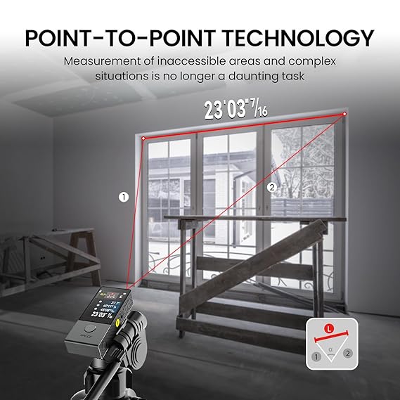 Cutting-Edge P2P Technology: The D9 Pro is equipped with leading-edge P2P function, enabling easy measurement of the distance between any two points from one remote location. It offers a safe and accurate way to measure distances in hard-to-reach areas and complex situations. Measuring inclined frames, beams, and ceilings has never been easier