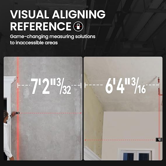 Advanced Dual Visual Aligning Indicator Design: The D9 Pro is designed with unique bilateral laser reference lines, based on an advanced integrated laser module, ensuring 100% coaxial two-line alignment. It serves as a crystal-clear visual reference for horizontal or tilted alignment and marking, taking your efficiency and precision to a whole new level