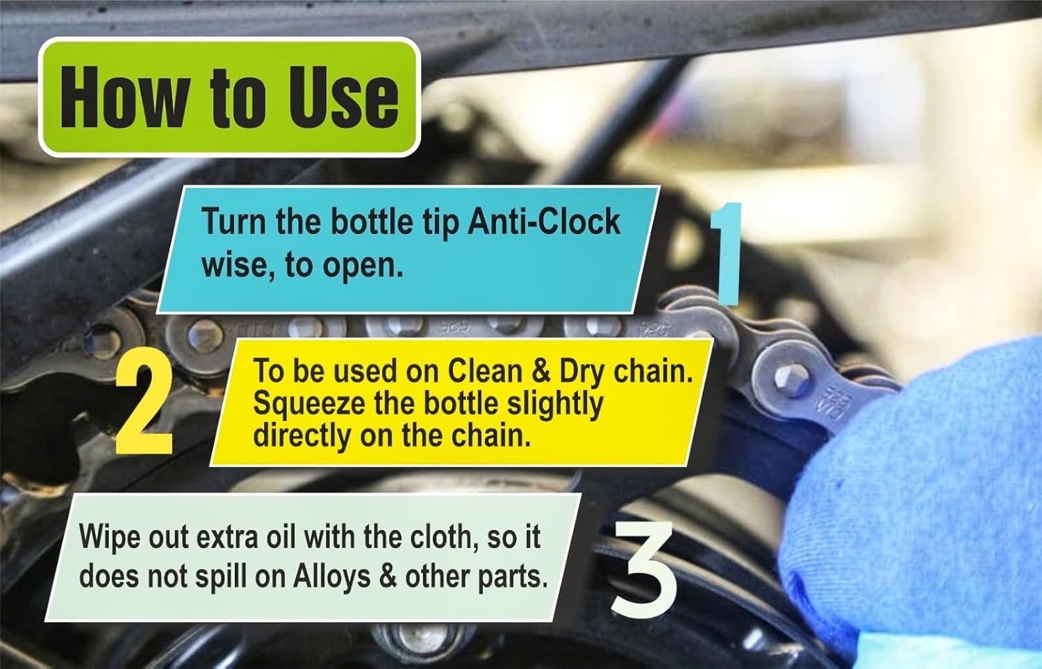 MADE IN INDIA : Feel proud about keeping your Chain lube with Oswe Lube made right here in India. The Earth friendly formula is crafted with care and packaged in recyclable plastic bottles for responsible use.
