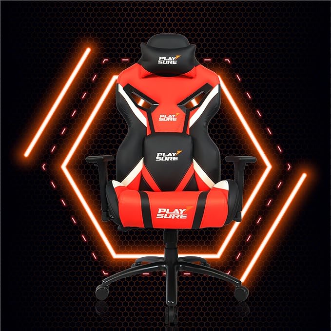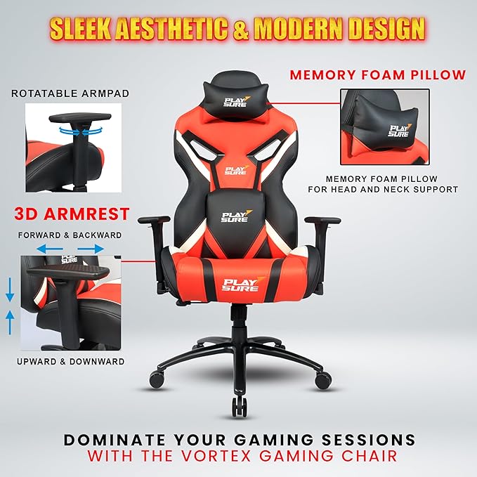 Make My Chairs V-25 Computer Gaming Chair|3D Adjustable Armrest,Leatherette Cushion Seat & Back| Multi-Position Lock with Neck & Lumbar Pillow Pc Gamer Ergonomic Chair