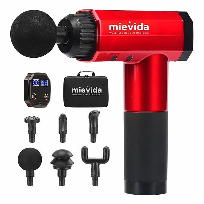 Mievida Fit Gen X Portable Electric Body Massager Gun | Deep Tissue Percussion Massage Machine for Full Body Pain Stress Relief | Cordless, Rechargeable, Quiet Handheld with 6 Specialized Heads