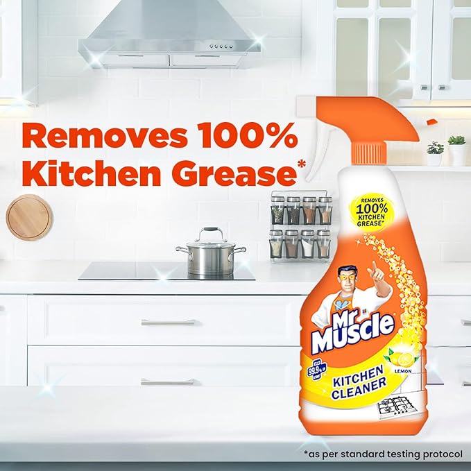 Mr Muscle Kitchen Cleaner Spray (450 Ml + 425 Ml Pouch) (875 Ml) || Suitable for all Kitchen Surfaces, Gas Stove, Countertop, Tiles, Chimney and Sink || Kills 99.9% Germs