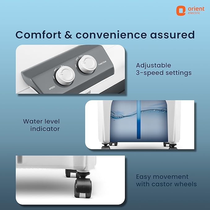 • Comfort & convenience assured: With three adjustable speed settings of Low, Medium, and High, a water level indicator and 360-degree swivel wheels for movement around the house, this air cooler for room is designed keeping your comfort and convenience in mind.
