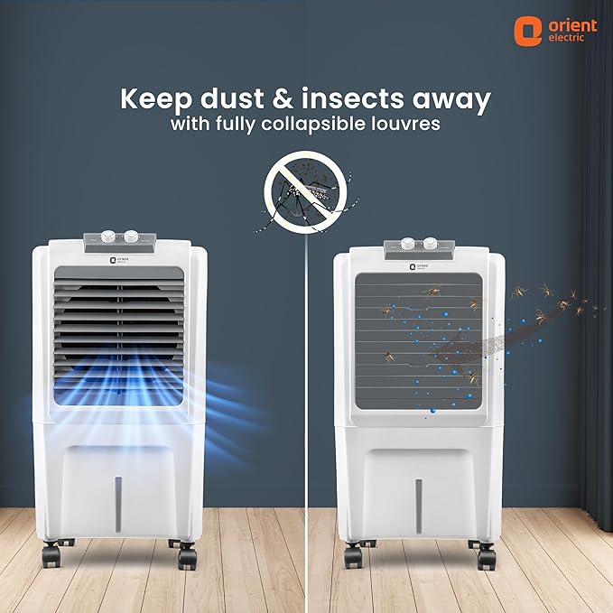 • Fully collapsible louvres: The personal air cooler comes with fully collapsible louvres to keep the insects and dust from entering when the cooler is not in use.