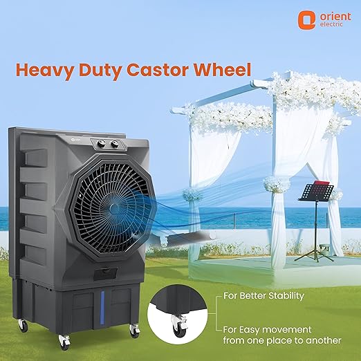 Orient Electric Stark 110 L Heavy Duty Commercial Air Cooler With 20 Fan | Aerofan Technology |High-Density Honeycomb Cooling Pads | Extra Powerful Air Throw Auto Water Refill Technology| Grey