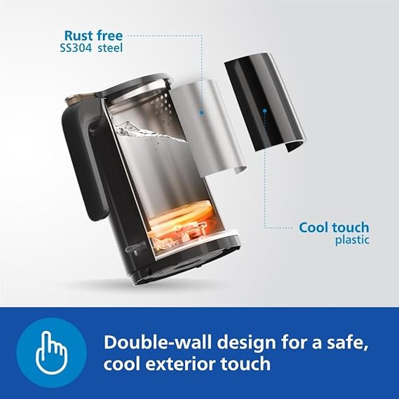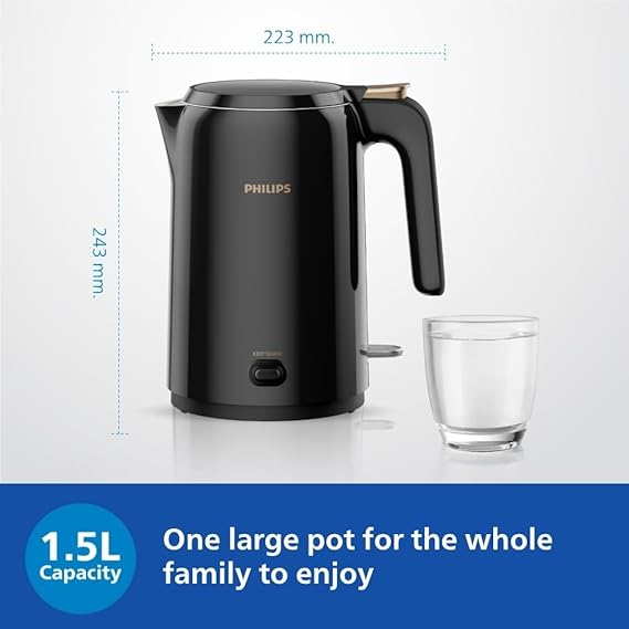 Philips Double walled electric kettle with Keep Warm function, 1.5L, 1300W, Auto shut off, 2yrs Warranty (HD9378/80)
