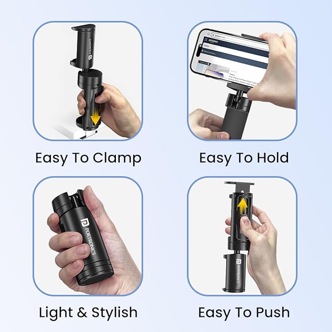 • Multiple Use Mobile Holder Clip: Keep your phone hands-free, with the Portronics, Mobot Clip a phone holder that can be used traveling by plane, working in office, cooking in the kitchen, or exercising in the gym, fix your phone for using Facetime, watching videos and more.
