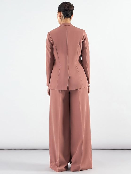 • Dusty peach single-breasted blazer in a tailored fit, featuring a notched lapel, button closures, long sleeves, and two functional pockets—perfect for formal settings and business wear
