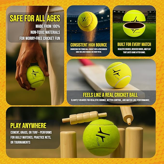 Designed for Tennis Ball Cricket – Built to deliver the perfect balance of bounce, durability, and control, making them the top choice for tennis ball cricket, coaching, and training drills across all skill levels.