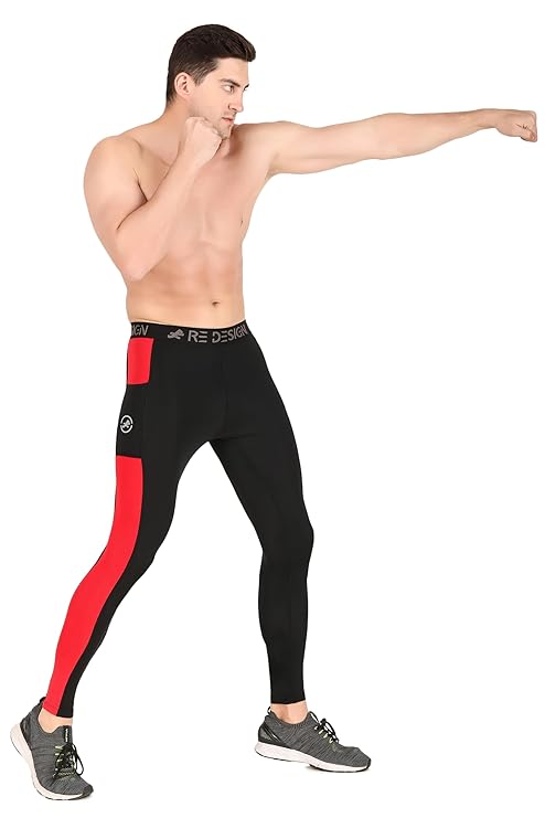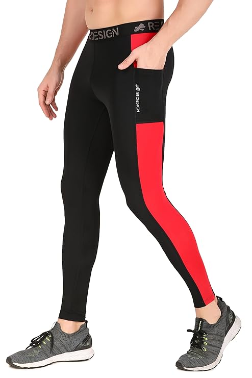 ReDesign Apparels Men's Nylon DC Pocket Compression Pant for Running, Gym and Other Sports