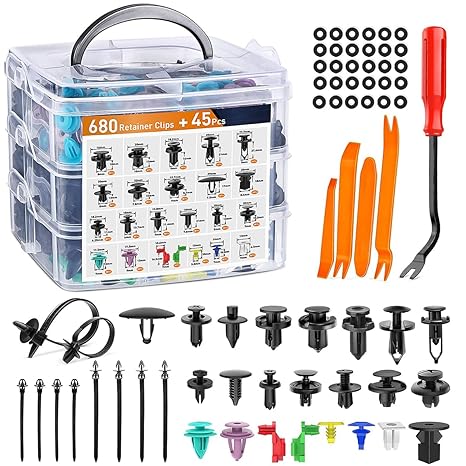 VERSATILE DIY ACCESSORIES: This car retainer rivet push fastener clips set with up to 680 pieces of retainer clips in a convenient plastic box, this kit allows you to freely customize and enhance your vehicle at any time. It's a cost-effective alternative to visiting an auto parts store.