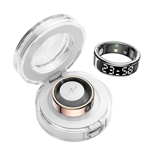 • Advanced Health Tracking: Monitor your heart rate, blood oxygen (SPO2), and daily steps with high accuracy in a stylish smart ring design.