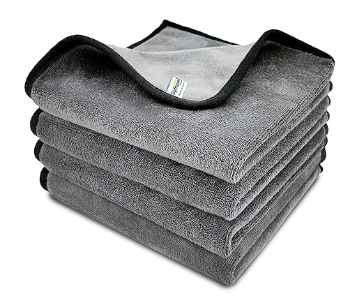 SOFTSPUN Microfiber Cloth Silk Banded Edges 500 GSM 40X40 cms Pack of 4 Grey! Silk Banded Edge Towel Set Extra Thick Microfiber Cleaning Cloths Perfect for Bike Auto Cars Both Interior and Exterior.