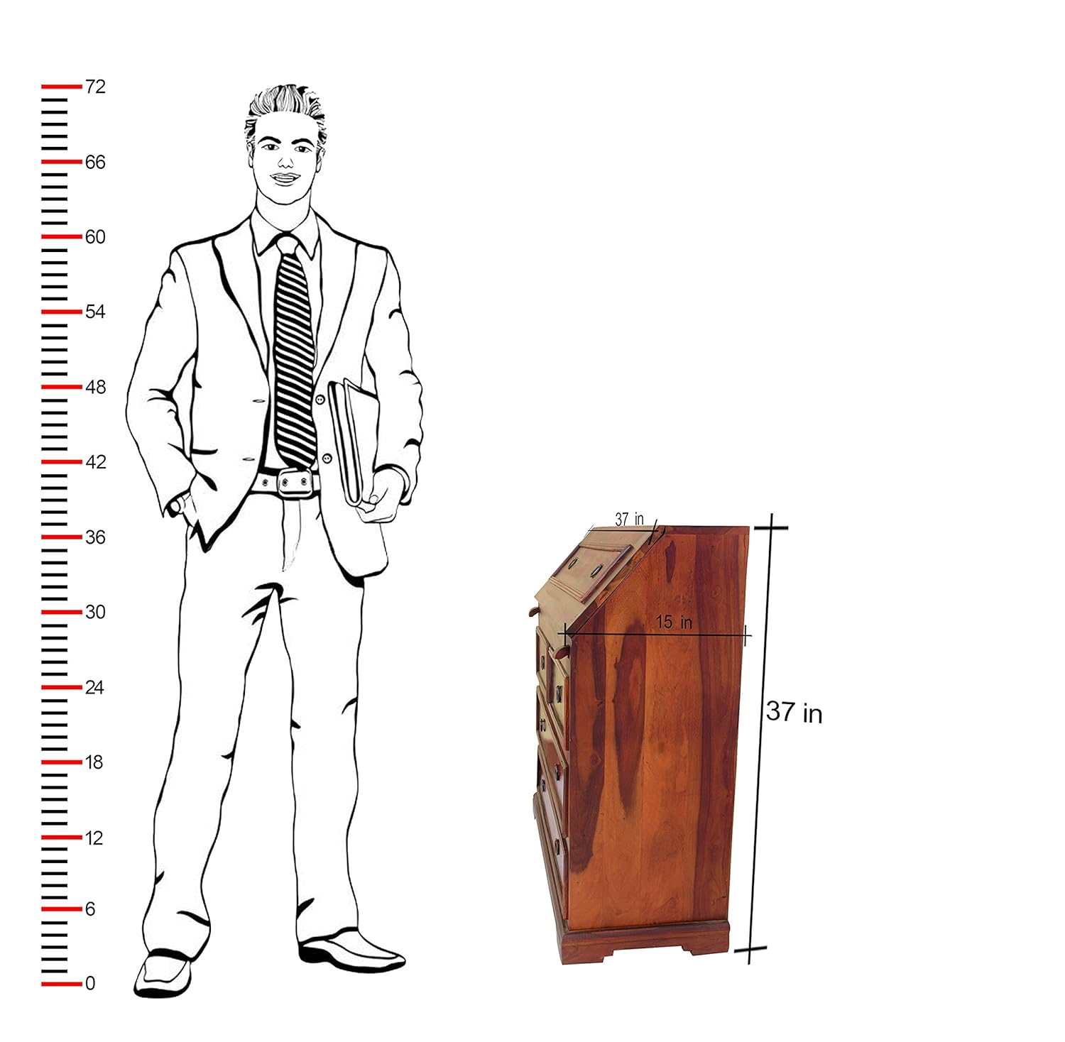 • Wooden Writing Study Table Dimensions: Height (37 inch), Lenght (37 inch), Width (15 inch). Chair: Height (37 inch), Lenght (18 inch), Width (18 inch)