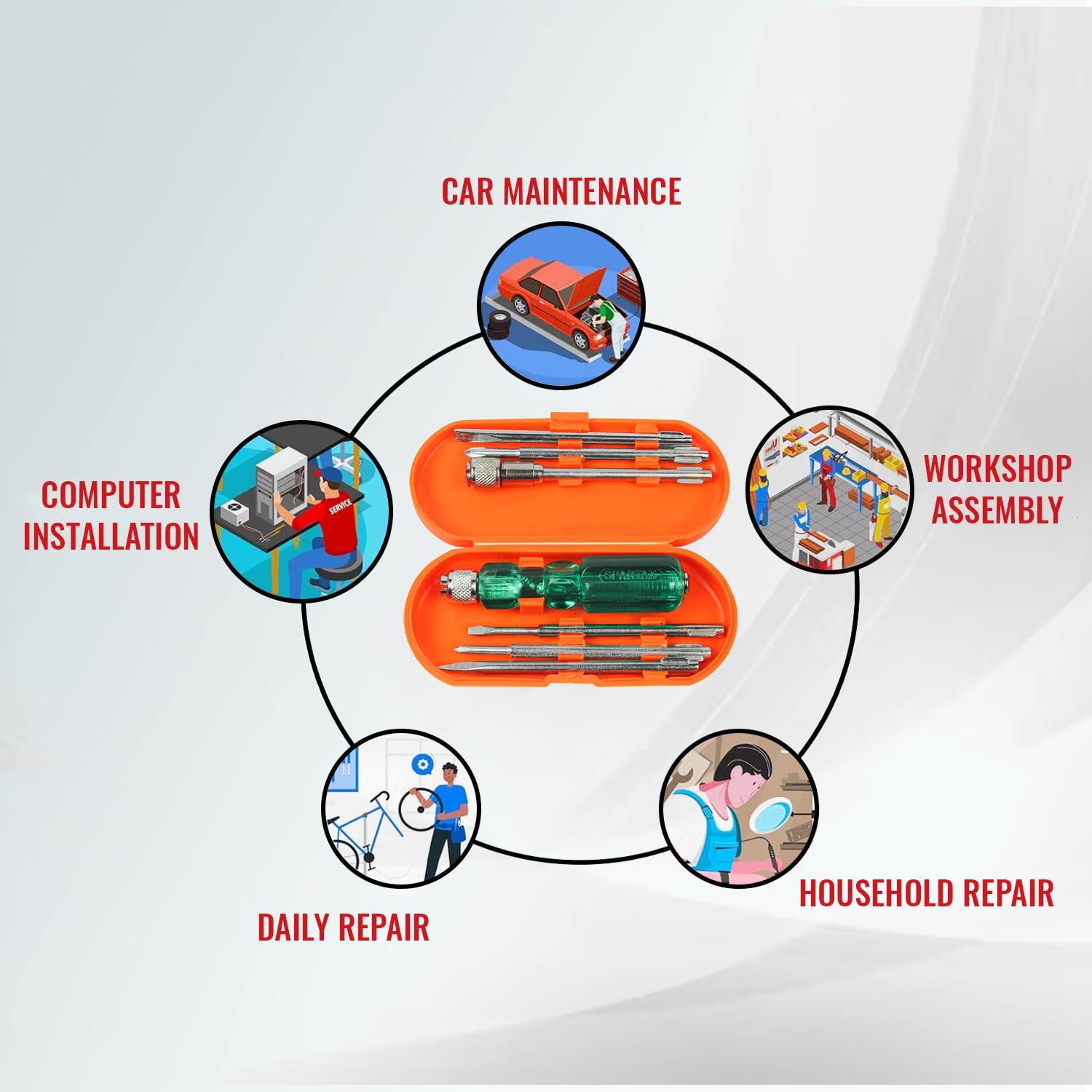 MULTI-PURPOSE USAGE: Spartan Screw Driver set is specially crafted for professionals and amateurs for quick fixes of household electronic fixes. The transparent handle comes with a neon bulb that allows electric circuit testing up to 500V
