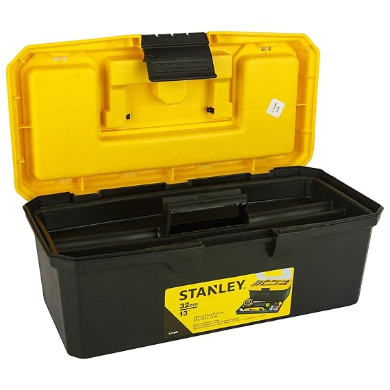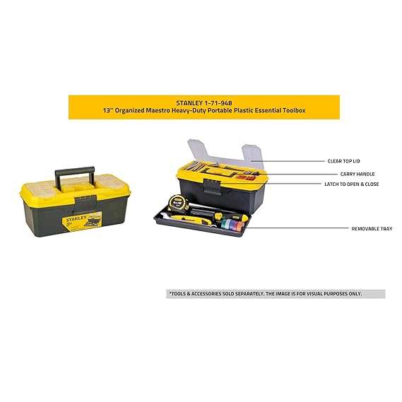 STANLEY 1-71-948 Organized Maestro Heavy-Duty Portable Plastic Essential Toolbox With Clear Top Lid Removable Tray Compartment For Easy Convenient Storage