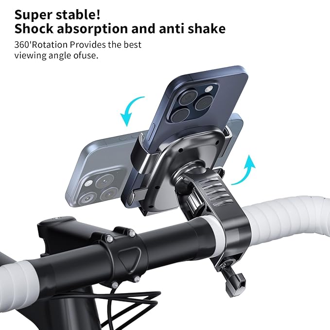 • 【360° Adjustable phone holder for bike】 The mobile stand bike can rotate 360°, allowing for perfect screen adjustment. It's an ideal Motorcycle/bike/scooter accessory for your journey