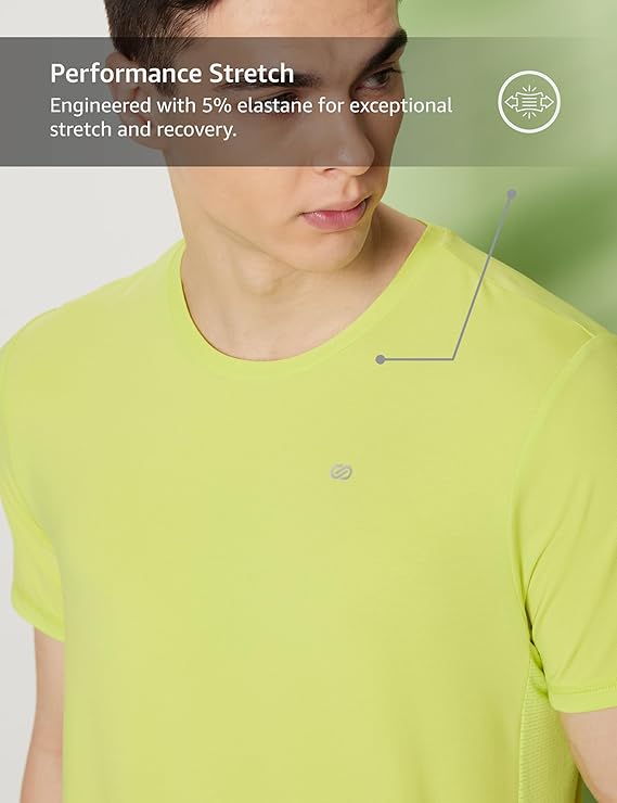 Symbol Premium Men Solid Regular Fit Sports Stretch T-Shirt | Round Neck | Raglan Sleeve | Moisture-Wicking | Activewear | Running | Gym | Plain.