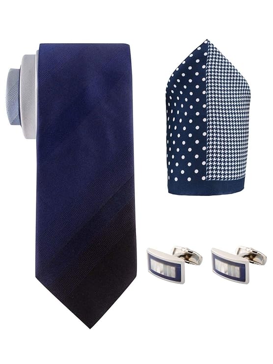 Package include: 1 Necktie, 1 Cufflink and 1 Pocket Square Adopting the soft and good texture, it is comfortable to wear and to touch, which is must-have accessory for any successful men.