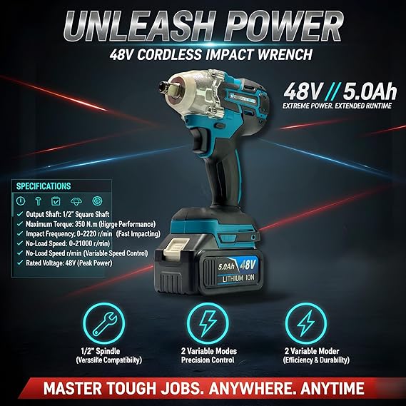 IMPACT WRENCH delivers 350Nm torque; perfect for automotive, construction, and assembly jobs.