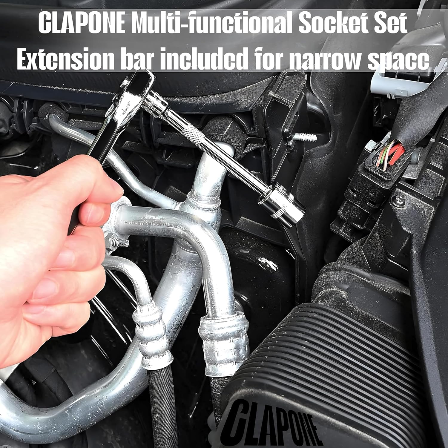 Ergonomic handles offer a comfortable, non slip grip that reduces hand fatigue during extended use, while clearly marked socket sizes allow quick selection. With the CLAPONE tool kit supporting organized workflow and efficient tool changes, users can complete repair tasks faster, more accurately and with greater overall confidence.
